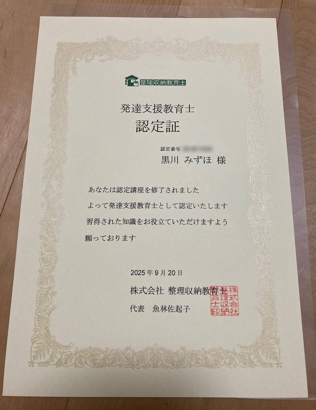 黒川は、先日発達障がいの学びから『発達支援教育士』の資格を取得しました✎
